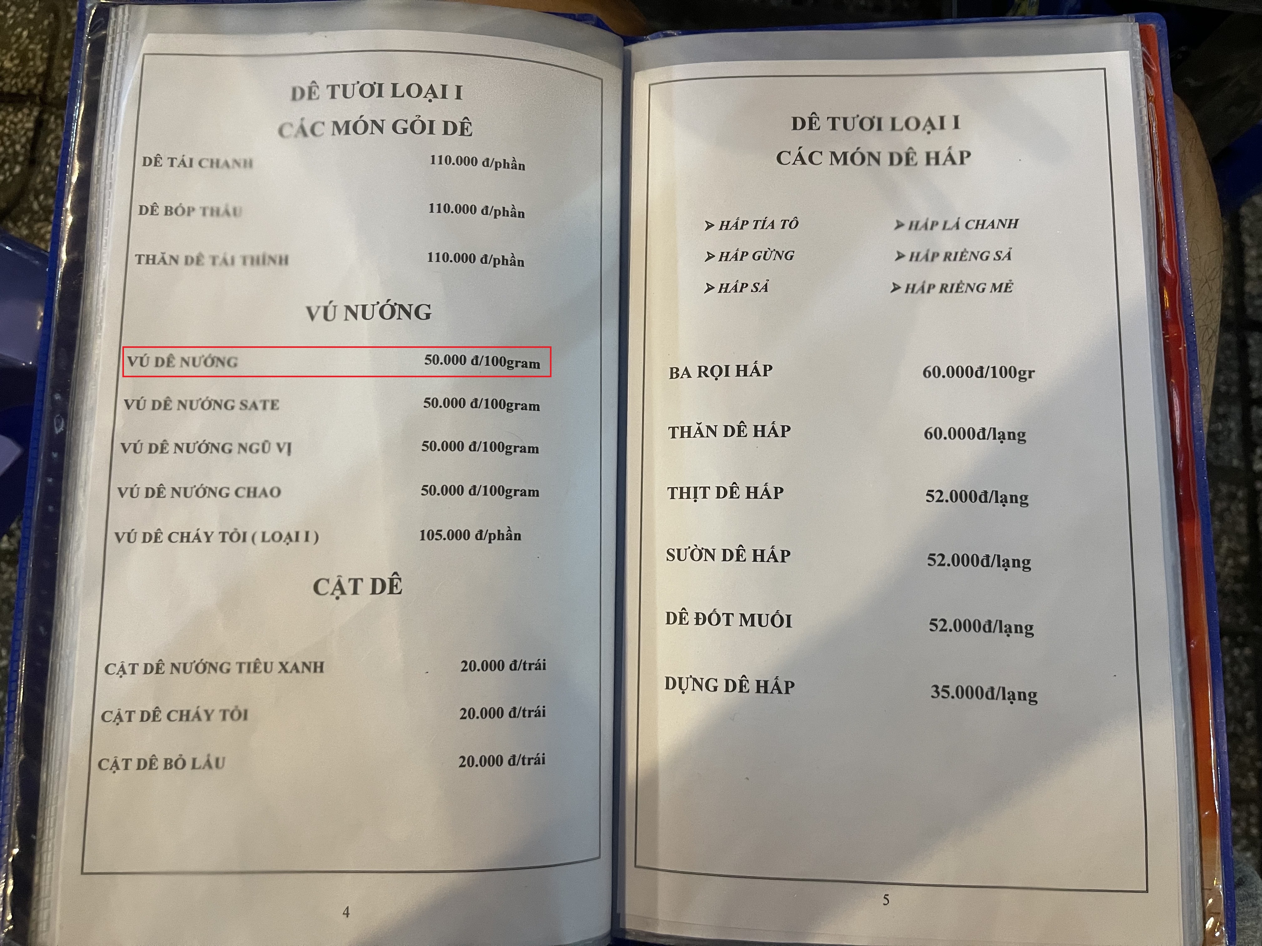 - 염소가슴구이 (Vú Dê Nướng 100gram - 5만동(아래 사진은 200gram입니다))